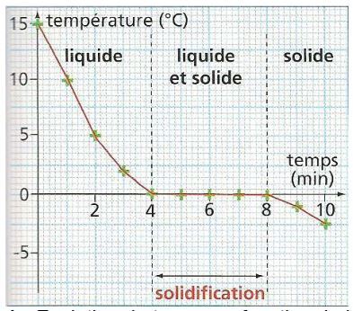 L'eau est à l'état solide lorsque la température est inférieure à 00°C. Elle est à l'état liquide lorsque la température est comprise entre 0 et 100 °C et à l'état gazeux lorsque sa température est supérieure à 100°C à la pression atmosphérique terrestre.