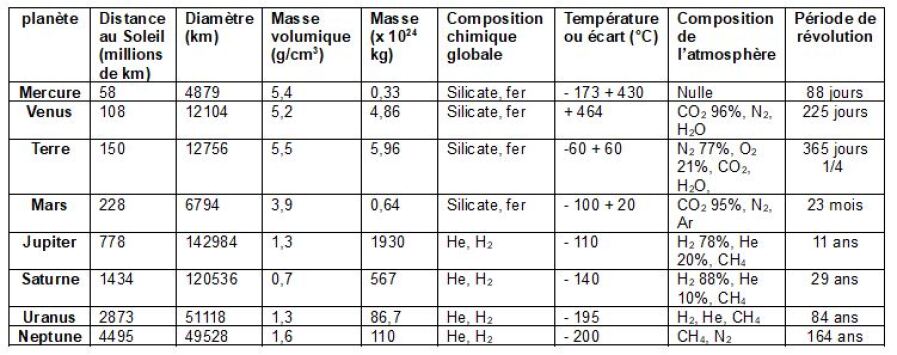 5) Quels sont les points communs des planètes appartenant au même groupe ?
