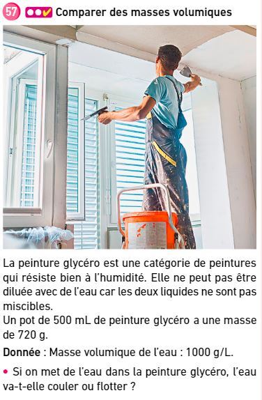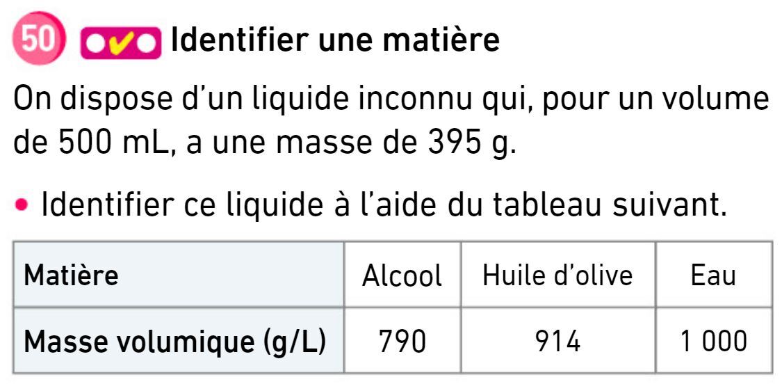 Exercice 57 p 47 : calculer une masse volumique à partir d'une masse et d'un volume