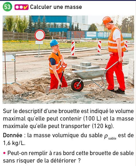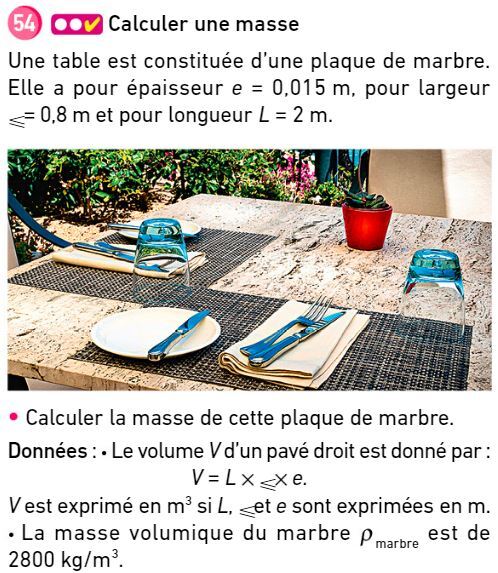Exercice 53 p 46 : calculer une masse à partir d'une masse volumique et d'un volume