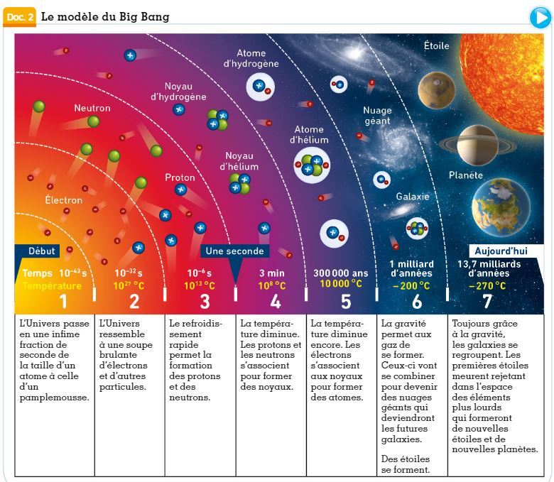 Les premiers atomes se forment au bout de 300 000 ans, les premières étoiles au bout d'1 milliard d'années.