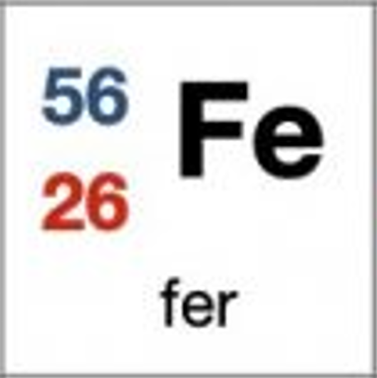 Donne la composition d'un atome de Fer.