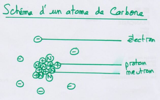 Faire le schéma d'un atome de Carbone à partir des informations présentes dans la classification périodique (voir plus haut).