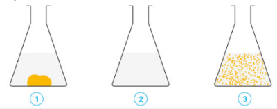 Après quelques minutes de chauffage, la solution devient limpide (2).